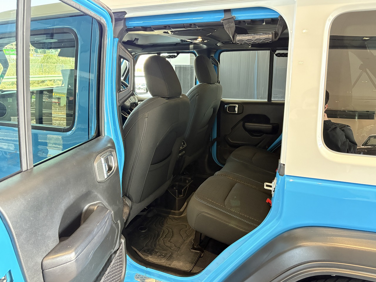 両側スライドドア 手動でのみ開閉できるスライドドアが車体左右に装備されています。